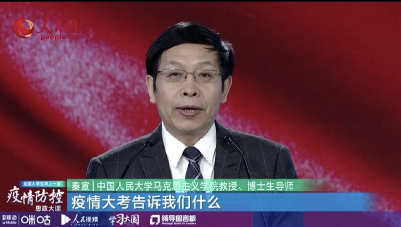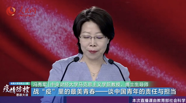 3月9日下午14:30分,教育部社会科学司、人民网联合举办全国大学生同上一堂疫情防控思政大课。4位资深教授讲述防疫战疫一线的感人故事,为高校思政课落实立德树人提供丰富、鲜活的素材。在这场战疫中,14亿中国人万众一心、众志成城,向世界人民展现了中国人民的奉献精神、不畏艰险迎难而上的精神等优良品德,向世界人民展示了中国速度、中国力量和中国精神,也为世界战疫工作的开展做出示范。