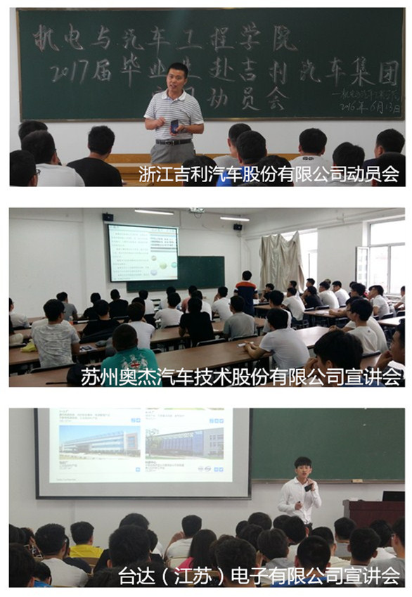 近年来,我院高度重视学生培养与就业工作,大胆创新工作思路,通过“请进来、走出去”模式,全方位、多领域拓宽学校与企业之间的合作。目前,已经与台达(江苏)电子有限公司、浙江吉利汽车股份有限公司、苏州奥杰汽车技术股份有限公司、乐歌人体工学科技股份有限公司、哈尔滨东安发动机集团有限公司、哈尔滨锅炉厂有限责任公司、庞贝捷漆油贸易(上海)有限公司等多家企业签定校企合作,已为企业成功输送500余名优秀学子;2017届毕业生通过校企合作3+1模式就业已达30%左右;与此同时,学院领导也高度重视学院师资队伍建设,先后已有李玉龙、吴艳秀、廉杰、范立国等多名青年骨干教师利用假期到浙江吉利控股集团、苏州奥杰汽车技术股份有限公司、庞贝捷漆油贸易(上海)有限公司等国内知名企业进修学习,并邀请企业技术骨干来我校交流和座谈,效果显著。