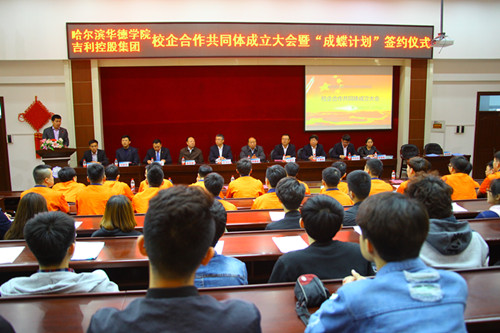 为进一步加强校企合作力度,4月27日,我校与吉利控股集团在第一教学楼报告厅召开校企合作共同体成立大会暨“成蝶计划”签约仪式。参加本次大会的企业领导有吉利控股集团党工委书记封飞行、人力资源中心部长牛泽平、服务大区总监方明月、人力资源中心科长尹纪铭、销售大区经理董宁,我校出席活动的领导有pg娱乐电子游戏官网入口校长、党委书记顾德库教授、副校长曲伟建教授、特聘专业委员会副主任于建国教授、各职能部处领导等;会议由机电与汽车工程学院常务副院长李长威副教授主持。