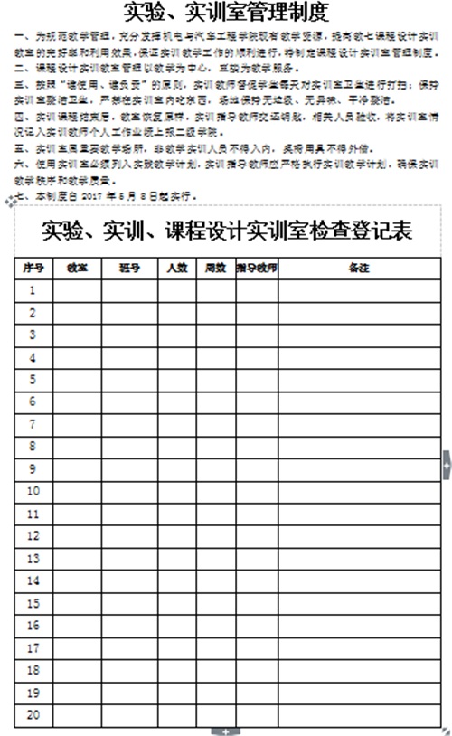 机电与汽车工程学院实训室管理制度