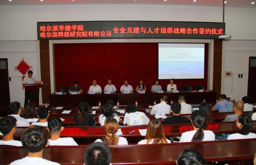 校长、党委书记顾德库与哈尔滨焊接研究院有限公司总经理李连胜共同为专业共建与人才培养战略合作揭牌,校企双方签订专业共建与人才培养战略合作协议。仪式的签定是深化校企联合培养的开始,是高校与企业联手育英才的序幕,也必将成为引领校企合作的新趋势,开启校企联合培养的新模式。