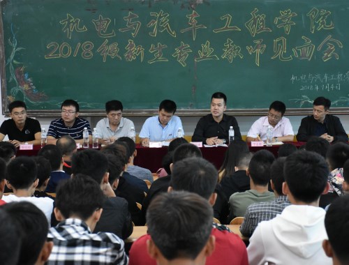 为帮助学院2018级新生更好、更快的融入大学生活,增强对学校、学院、专业的了解和认知,机电与汽车工程学院于9月4日下午在第二教学楼J102、J202分别召开2018级新生专业教师见面会。此次师生见面会共分三场次,校长助理兼机电与汽车工程学院院长李长威;党总支书记付洪涛;副院长吴柏宇、周启新;院长助理及各系专业教师、辅导员出席,学院2018级全体新生参加会议,会议由党总支组织委员赵强主持。
