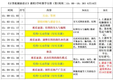 线上课程采用速课+屏幕分享直播答疑方式,学生在速课学习过程中,教师充当闹钟角色,根据任务表时间通知提示学生下一步要做的事情。