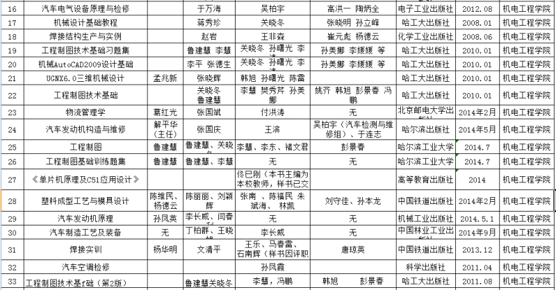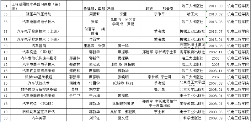 机电与汽车工程学院 2003--2015年教材汇总表