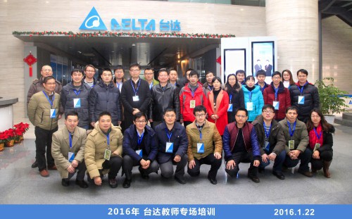 2016年1月22日-27日,我院副院长王振力、自动化教研室主任李冰一行两人,参加了于中达电通(上海)股份有限公司举办的台达工业自动化产品教师专场培训。台达集团中达电通副董事长尹镟博先生、工业控制系统产品开发出产品总监张绍坤先生出席了培训开班仪式。