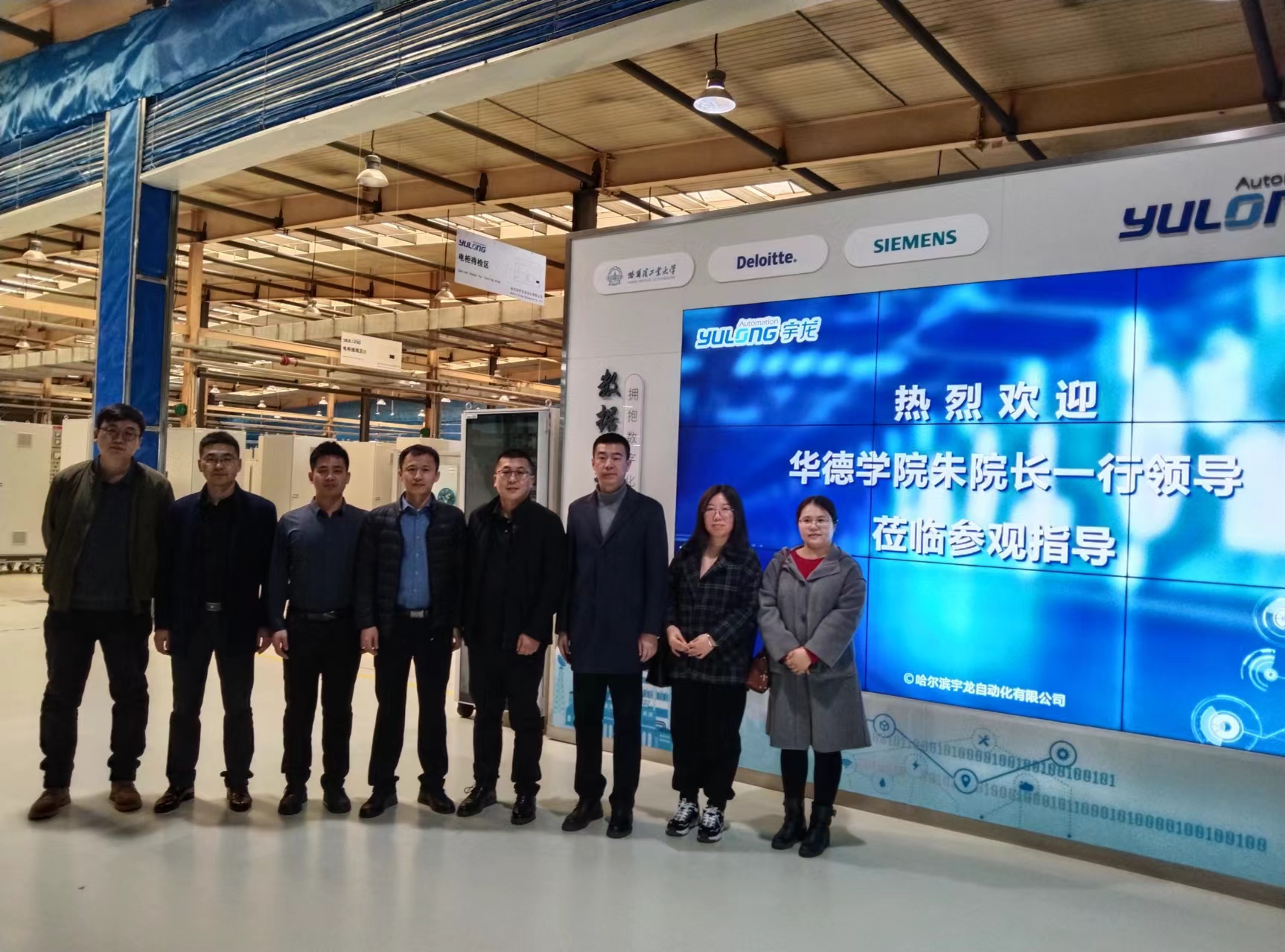西门子(中国)数字化工业集团行业总监、我校2011届校友常子龙、哈尔滨宇龙友力科技有限公司总经理冯志鹏、教研总监李璐和教研专员石梓垚、潘艳威对智能学院一行的到来进行了亲切接待并表示了热烈的欢迎。