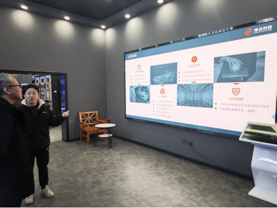 在黑龙江银匮科技开发有限公司,王振力院长一行实地参观了企业研发中心与技术成果展厅,详细了解了企业在工控安全领域的核心技术与创新应用。作为一家专注于工业智能化、绿色化发展方向的高新技术企业,围绕“自研数字化平台底座”和“数智+”优化研发方向,聚焦数字化车间、市政行业(智慧供热、智慧水务、智慧燃气、智慧管网)智慧化建设、零碳智慧综合能源、安全运营,四大核心业务。