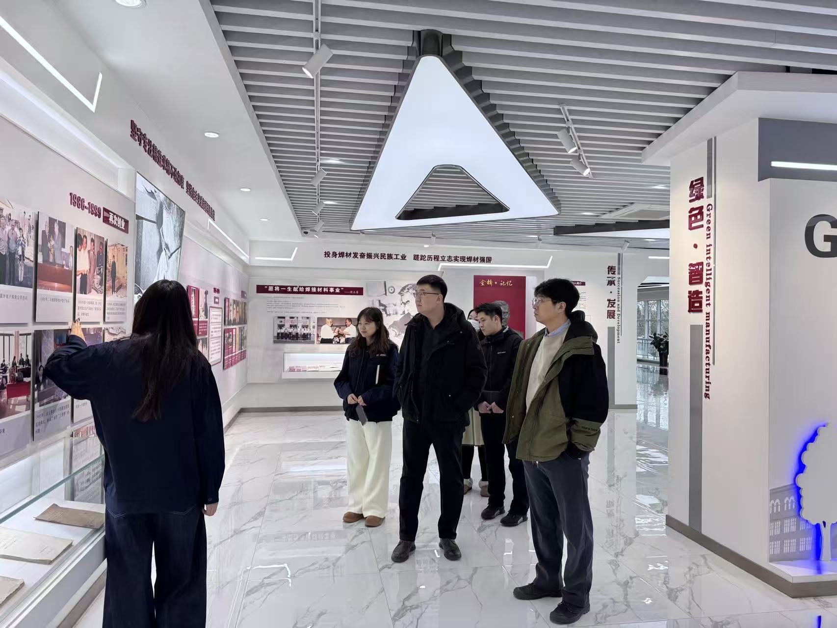 走访过程中,团队成员在企业接待人员——集团研究院评价中心主任高艳静、永昌公司实心焊丝事业部部长侯清龙、集团办公室行政组主管孟杰等的陪同下,深入研发中心与智能化生产车间,实地观摩了从原材料加工到成品产出的全流程智能生产场景,详细了解了企业在新能源焊接技术、高端装备焊接工艺等方面的最新创新成果。先进的生产设备、严谨的质量管控体系以及持续迭代的技术研发理念,让团队对焊接行业的现代化发展趋势有了更直观、深刻的认知。
