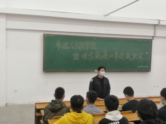 自返校复学以来,我院始终将师生在校的疫情防控和健康安全放在工作首位。为优先保障建档立卡和城镇低保等贫困生的需求,帮助经济困难学生减少防疫物资上的开销。10月7日中午,机器人工程学院在教三405开展爱心助困防疫口罩发放仪式,为学院二至四年级61名建档立卡、城镇低保等贫困学子免费发放口罩。副院长刘张参加发放仪式,仪式由辅导员刘博主持。