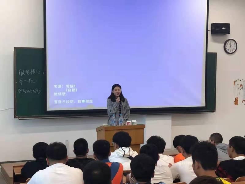 宋语欣用自身经历结合理论知识向新生们系统的讲解了树立目标、践行目标的重要性。第一,明确学习目标,树立奋斗意识。确定个人目标后,要不断的将目标和进程想对比,只有了解自己的行进速度与目标之间的距离,学习成绩就会得到维持和提高,就会克服一切困难;第二,建立学习小组,树立良好班风。一个人学一辈子,不如一群人学一阵子。班级的班委和学生干部要起到模范带头作用,制定符合班级的发展计划;第三,做到不懂就问,树立求知能力。要学会“问自己,问同学,问老师”。在今后的学习生活,每个专业都会有专业导师,勤与专业导师沟通,确定适合自己的发展方向,从而减轻迷茫程度。