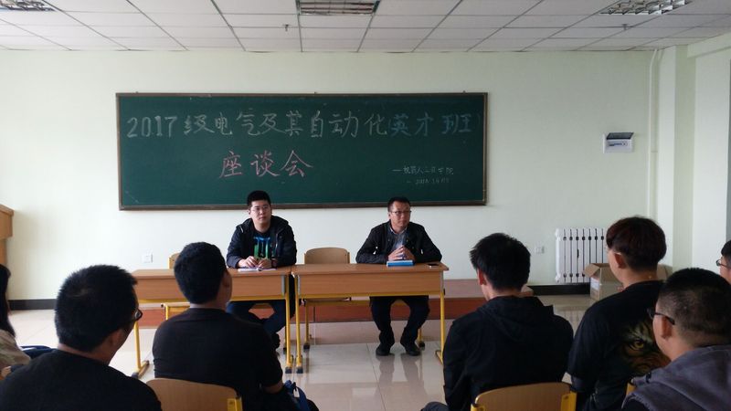 为全面了解电气工程及其自动化(英才班)学生入学以来的学习、生活、思想状态,机器人工程学院于9月19日上午9点30分在教五512教室召开“2017级电气工程及其自动化(英才班)座谈会”,会议由学生工作负责人刘张主持,辅导员王韩笑及1708201、1708202两个班级全体学生参加此次会议。
