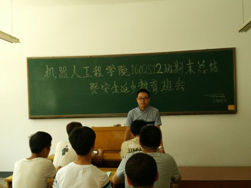 机器人工程学院于7月7日,在教一115、116、117、119、120、122 召开“2016级学生学期总结暨安全返乡教育”主题班会,会议由辅导员苏军主持。