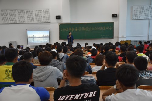 杨老师分别从我校共青团工作基本情况介绍、纳新具体要求及相关通知、竞选前准备工作、如何用正确的心态去面对竞选结果四方面进行宣讲,他希望同学们都能够积极主动的参与到各项学生组织中,通过实践锻炼自己,提升自己,为四年后走到求职路奠定基础。