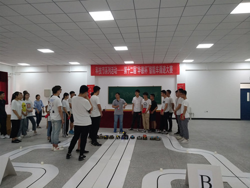 6月26日,机电与汽车工程学院在第七教学楼317教室,举办科技节系列活动--第十二届“华德杯”智能车循迹大赛。校长助理兼机电与汽车工程学院院长李长威、学院党总支书记王郁黎、副院长周启新、院长助理宁士君、团总支书记杨志承、辅导员王国清出席本次活动。本次大赛经前期96人中层层筛选,共36人参加本次比赛分为12个小组进行抽签对抗赛。