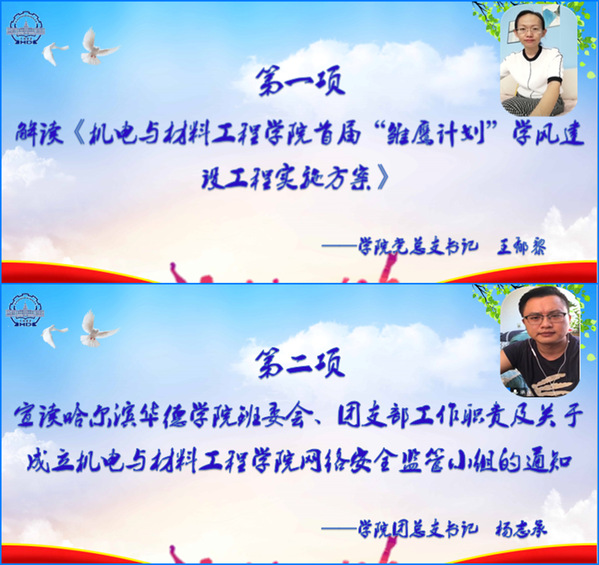 随后,团总支书记杨志承宣读“pg娱乐电子游戏官网入口班委会、团支部工作职责”及《关于成立机电与材料工程学院网络安全监管小组的通知》。