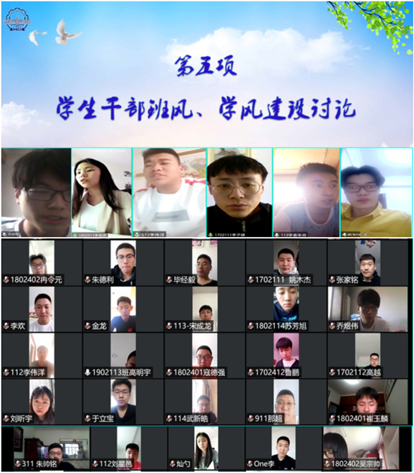 同学们围绕班级干部如何在学风建设中发挥引领作用;如何发挥班委会、团支部在班风、学风建设中的引领作用;针对班风、学风建设中存在的不足及改进建议等方面进行讨论。所有学生干部均表示,将努力提升自身能力,助力学院良好班风、学风形成。