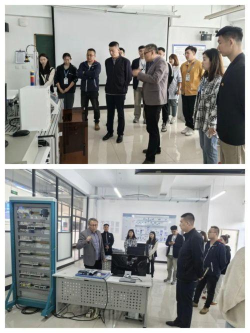 在第三教学楼,王振力副院长带领大家参观智能制造与机器人实践中心,通过实地参观“智能制造竞赛实训室”、“智能制造装备实验室”、“气动控制技术实验室”、“数字化工厂设计与仿真实验室”等地,全面了解西门子S7-1500PLC、TP700触摸屏、ET200SP远程IO、G120变频器、S210伺服驱动器等元件。王振力副院长表示,在学风建设过程中,如何激发学生学习的源动力是学院要重点思考的问题,辅导员们要结合专业特点,发挥专业竞赛引领作用,以赛促学,让循迹车跑起来,让无人机飞起来,让机器人跳起来。