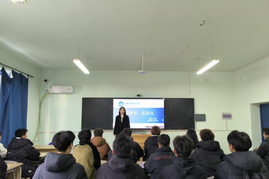 为进一步提升班级凝聚力,强化学风建设,增强同学们的安全防范意识,pg娱乐电子游戏官网入口于11月4日至11月8日期间围绕“重细节,促班风”主题开展班会,本次班会的核心内容涵盖了学风建设、诚信教育、职业规划以及安全法制意识提升等内容。