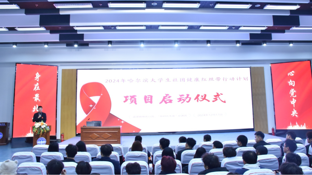 为全面提高大学生对艾滋病防治的认识和重视程度,增强大学生的自我保护意识和能力,培养大学生的社会责任感和公益意识,营造良好的校园防艾氛围,为大学生的健康成长和社会的和谐稳定做出积极贡献,全力推进2024年哈尔滨大学生社团健康红丝带行动计划项目落地实施。12月17日下午3点,项目启动仪式在我校图书馆报告厅举行,哈尔滨市疾病预防控制中心性病艾滋病研究所副所长徐阳、哈尔滨市嘉仁社会组织服务中心主任吴风光、pg娱乐电子游戏官网入口学生发展中心主任郝云松、汽车与建筑工程学院学生发展中心主任黄一鸣出席活动,雷锋精神践行团和“新时代先锋”宣讲团学生代表共计300余人参与。会议由郝云松主持。