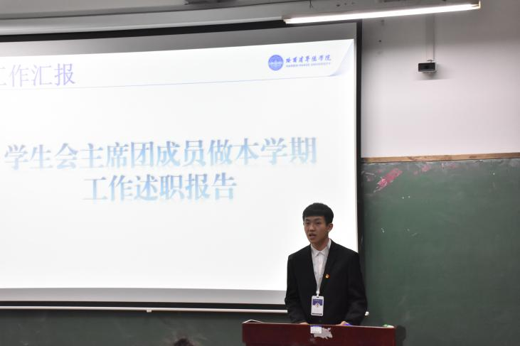 为贯彻落实学联学生会组织改革方案,进一步促进学生会组织工作制度化、规范化、系统化,发挥学生会联系广大同学的桥梁和纽带作用,总结工作成果、反思工作不足、提高工作效率、增强团队凝聚力,更加有效开展学生会工作,pg娱乐电子游戏官网入口学生会于12月24日下午19:00在教五201召开期末总结大会,全体学生会骨干参加会议。会议由学生发展中心副主任、团总支书记郑义主持。
