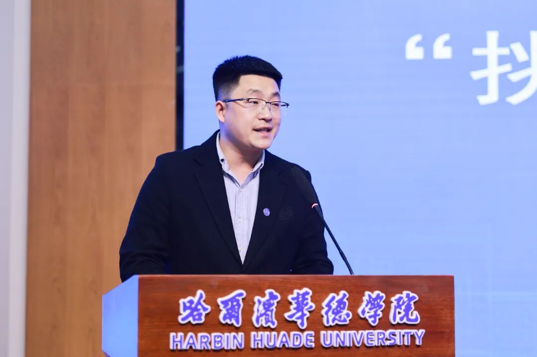 魏可霏副校长做动员讲话。她指出,“挑战杯”是大学生科技创新的重要平台,更是融合科创与实践的“大思政课”,举办赛事旨在以赛促学、以赛促教、以赛促创,激发青年创新活力。她向全校师生提出三点希望:一是要广泛动员、积极参与,共筑赛事氛围。鼓励跨专业、跨年级组队,形成教学相长、师生共进的良好氛围,共同将创意构想转化为切实可行的创业方案;二是要严谨打磨、恪守诚信,彰显专业素养。要恪守学术诚信,严格遵守竞赛规则,确保方案逻辑严密、数据翔实、论证充分,展现华德学子的良好风貌;三是要胸怀大局、服务国家,践行青春担当。将个人理想融入国家发展大局,让创新成果真正服务于社会建设,用智慧和汗水为国家高质量发展贡献青春力量。