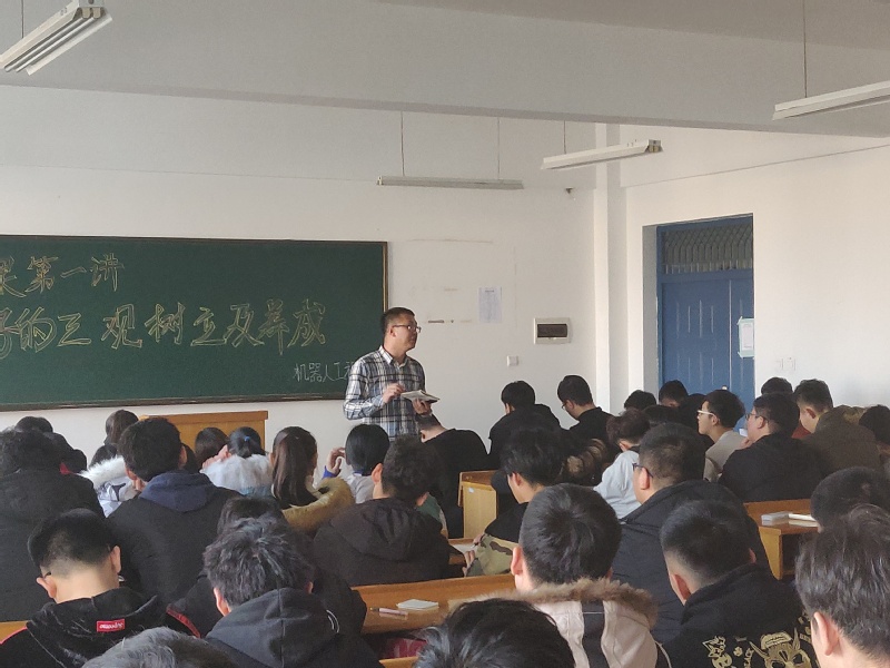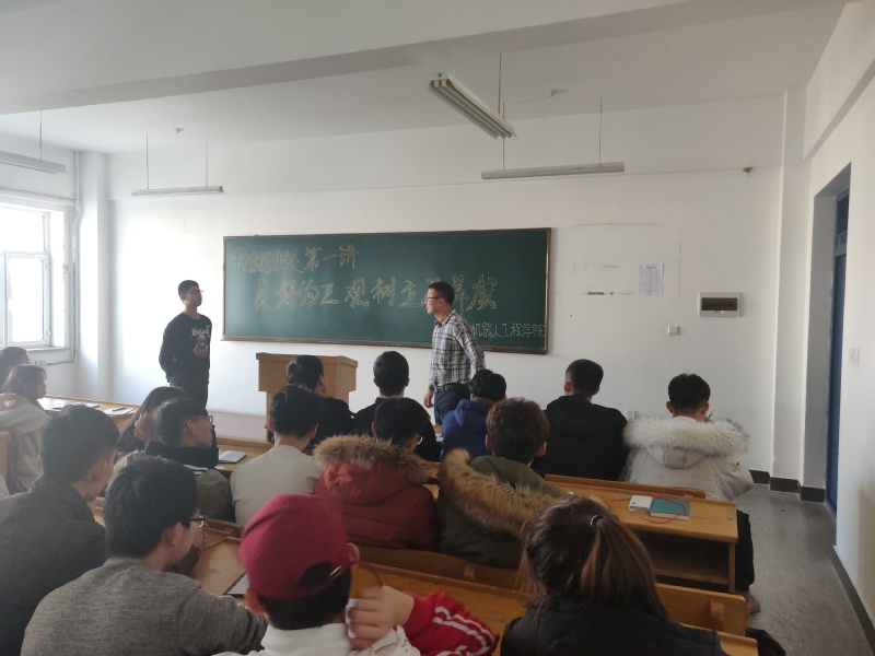 2018年12月6日,机器人工程学院2018年秋季学期初级团课第一讲——良好的三观树立及养成在教五202举行。本次培训由机器人工程学院副院长刘张主讲,院学生会主席刑一伟组织培训,94名干事参加培训。