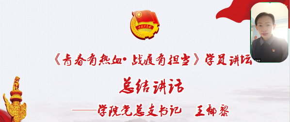 活动中,8名发言学员围绕本次初级团校培训内容,结合自身学习心得及从战‘疫’视角认识我的国等方面进行发言。同时,他们讲到,要以本次初级团校学习为契机,在未来的工作、学习、生活中全面提升自身政治理论素养,充分发挥学生干部在学生管理中的作用,提高工作能力和工作水平,用青春坚守初心,用拼搏培育硕果,让青春在党和人民最需要的地方绽放绚丽之花,为中华民族的伟大复兴贡献青年力量。