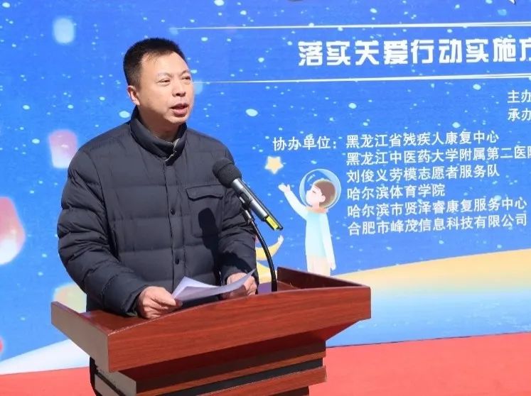 △ 黑龙江省残疾人联合会康复部部长刘德君宣读爱心倡议书