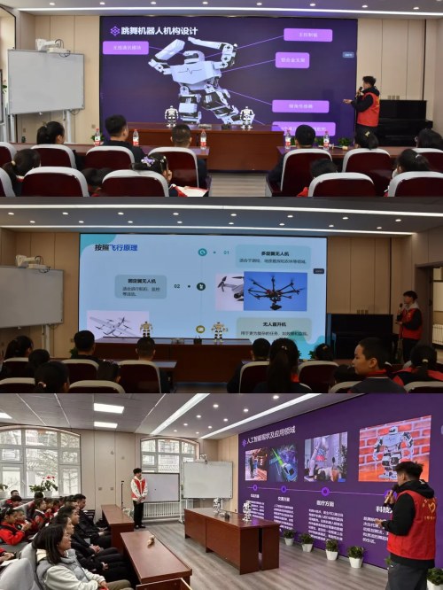 志愿者们是良师也是益友,他们向小朋友们讲解现代科技知识,将所知所学倾囊相授,通过讲解并实践操作跳舞机器人,讲述无人机运行原理及发展趋势,志愿者们的付出让现场小学生们切实认识和感受知识带来的无限乐趣,体会其中的独特魅力和力量,从此在他们心中埋下一颗科技强国的种子。