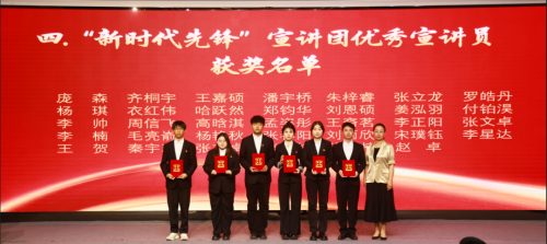 经过前期评选,会上授予齐桐宇等34名学生“新时代先锋”宣讲团优秀宣讲员荣誉称号,校长助理魏可霏为“新时代先锋”宣讲团优秀宣讲员代表颁奖。