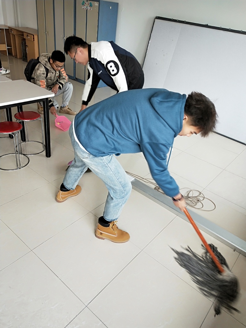 “博文”党员志愿服务队机器人工程学院分队队长谭天宇在说明了打扫地点及注意事项之后,党员们纷纷的拿起扫把和抹布开始了本次劳动。大家非常的小心和仔细,轻轻的擦拭实验台上和实验器具上的灰尘,任何角落都没有丢掉,将实验室打扫的干干净净。尽管中午是同学们的休息时间,但同学们的脸上没有任何的埋怨,反而是有一种自豪感,他们很高兴能让其他同学能在干净的实验室里做实验。不仅如此,志愿者们还主动的把楼层的其他教室也打扫了一遍,让教室显得更加整洁明亮,活动过程中同学们互帮互助,充分发扬了不怕苦、不怕累的志愿服务精神。