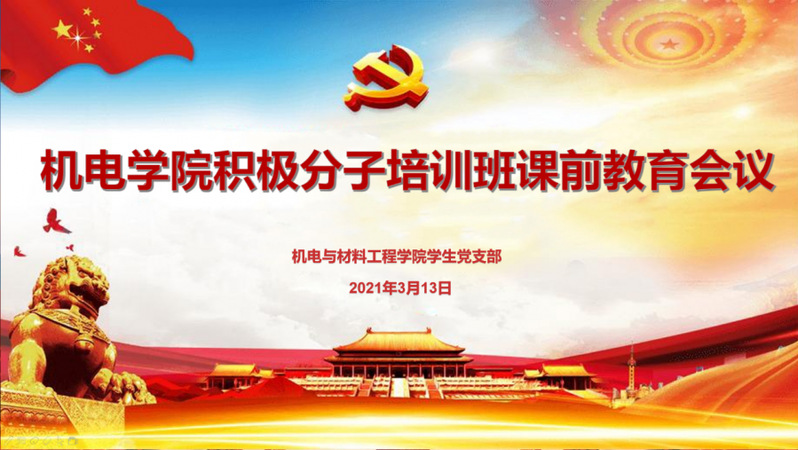 3月13日,机电与材料工程学院党总支通过“腾讯会议”平台召开2021年春季学期党校积极分子培训班课前教育大会,学院党总支书记王郁黎、学院党总支组织委员金文雯、辅导员史澈及全体学员出席会议,会议由学院积极分子培训班组长2002113班孙昊主持。