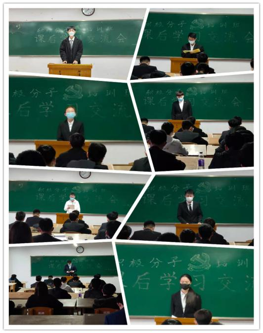 会议开始,孙昊简要介绍了党的发展史,并强调在建党百年之际,作为新时代大学生更应该传承红色基因,延续精神血脉,认真总结践行每一节党课的思想与心得。随后,1802114班李太铭、1902401班何柏华、2002401班周保旭等多名同学在发言中讲到,作为一名入党积极分子必须要端正自己的入党动机,传承党的精神,坚决自律,了解自身使命,践行自身价值。不忘初心、牢记使命,通过自我革命推动社会革命,在生活与学习中随时更新思想,弥补自身的不足,成为一名合格的入党积极分子。