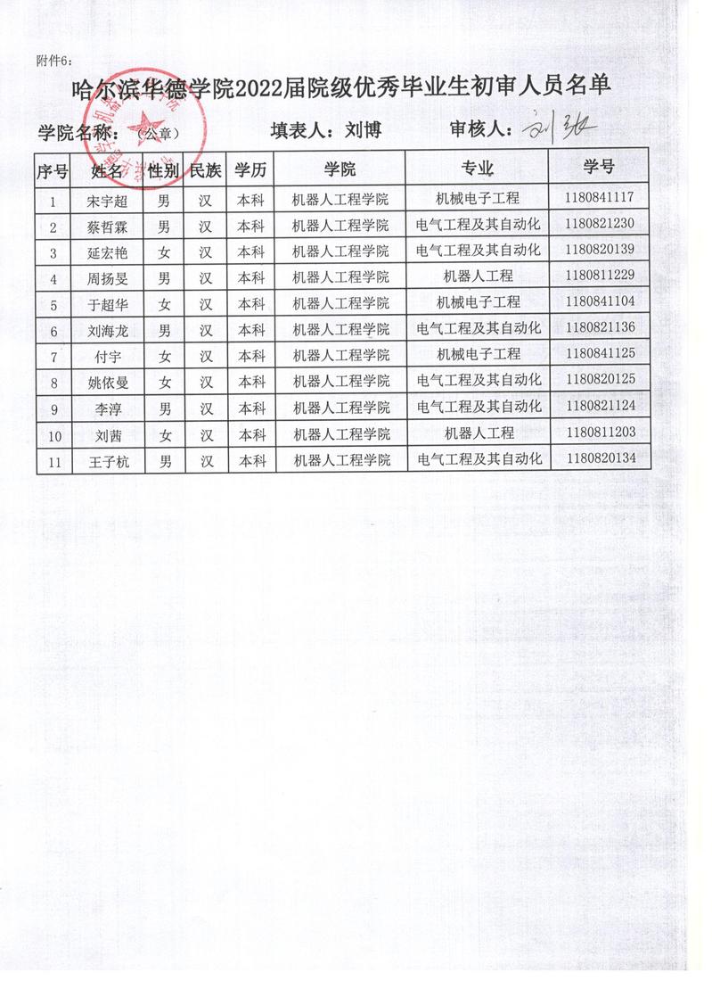 pg娱乐电子游戏官网入口2022届院级优秀毕业生初审人员名单
