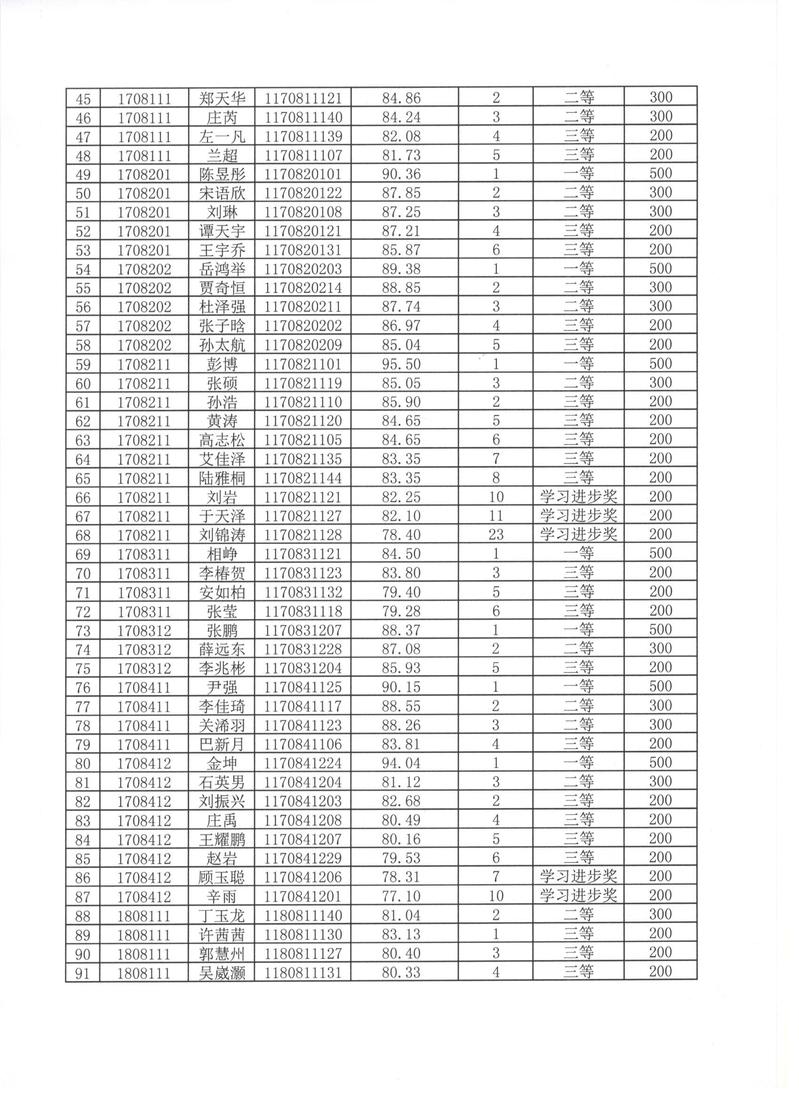 机器人工程学院2018-2019学年度第二学期学校奖学金公示