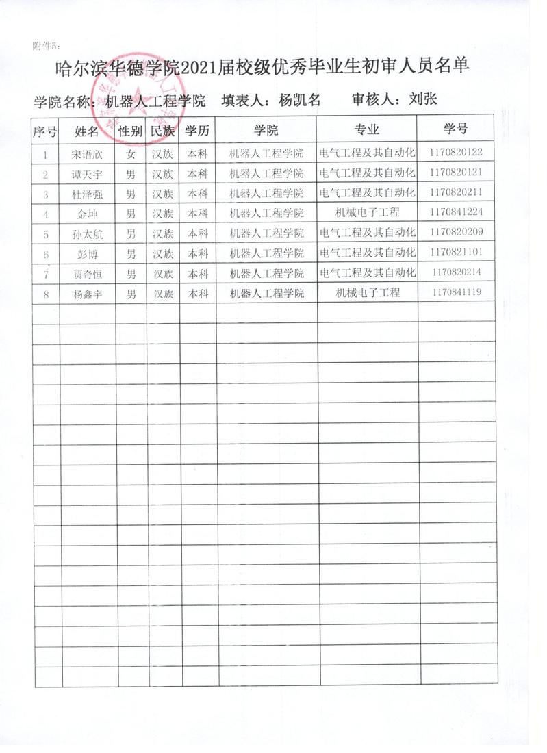 pg娱乐电子游戏官网入口机器人工程学院2021届校级优秀毕业生初审人员名单