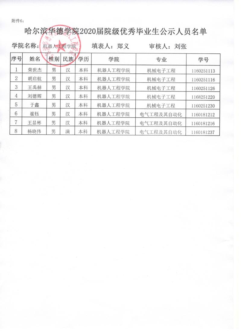 pg娱乐电子游戏官网入口2020届院级优秀毕业生公示人员名单