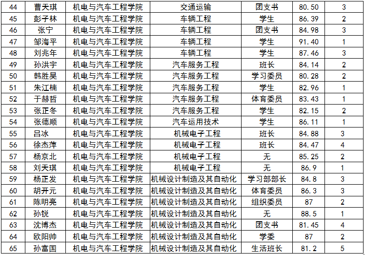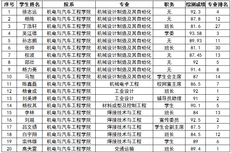 根据《pg娱乐电子游戏官网入口关于做好2016年国家励志奖学金评审工作的通知》要求,在公平、公开、公正基础上,经本人申请、班级评议、学院审核,最终评选出65名2016年国家励志奖学金获得者。现对评选结果进行公示。入队获奖名单存在异议,请在公示期间内与机电与汽车工程学院联系。