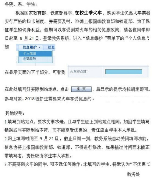 关于统计2018级新生乘火车优惠区间站点的通知