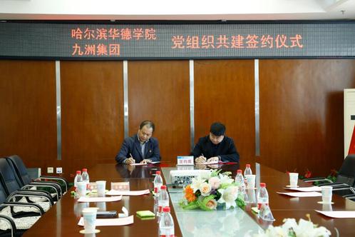 为进一步深化校企合作,充分发挥校企双方党建工作优势,助力校企双方提升党建质量,双方经充分协商建立党组织共建关系,中共pg娱乐电子游戏官网入口机器人工程学院党总支书记刘显忠与中共哈尔滨九洲电气股份有限公司党支部书记付强签订党支部《党建结对共建协议书》。
