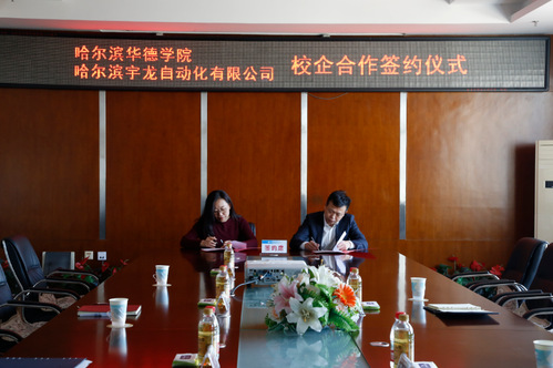 最后,顾鹂鸣副校长代表学校与哈尔滨宇龙自动化有限公司总经理赵金晓共同签署了《校企合作框架协议书》。