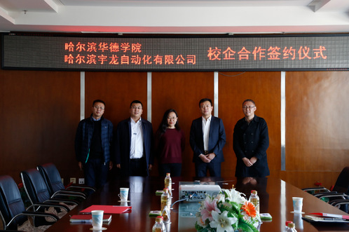 仪式上,赵金晓总经理对我校的办学理念和成果给予高度评价,对我校应用型人才培养模式表示肯定。他详细介绍了哈尔滨宇龙自动化有限公司的发展情况,并表示希望从学生实训基地、服务项目外包、双师培训以及建立学生奖助学金等方面与我校开展深入合作。