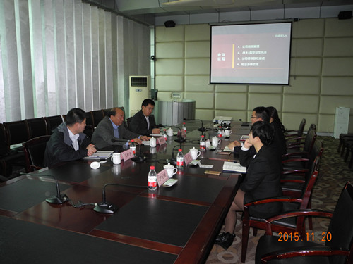 祝万云总经理向我校领导介绍了吉利的发展情况,并表示对我校学生的实习、就业工作高度重视。洽谈期间,顾德库校长介绍了我校的情况及此行的目的。双方就深化订单培养模式、深化师资队伍培养工作、建设企业专家数据库及建立吉利人才培养基地、吉利品牌培训与培养中心等事宜相互交换意见,并对提及的问题进一步磋商。