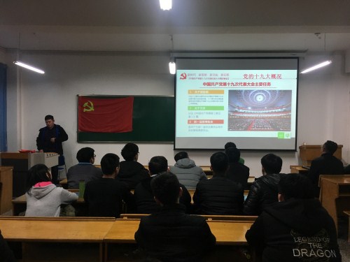 11月15日下午,机电与汽车工程学院第二学生党支部在教四403教室开展了以“青春共筑中国梦,不忘初心跟党走”为主题的十九大专题理论学习活动。党支部书记侯瑞贺、组织委员吴迪、宣传委员赵强及第二学生党支部全体学生党员参加本次学习活动。