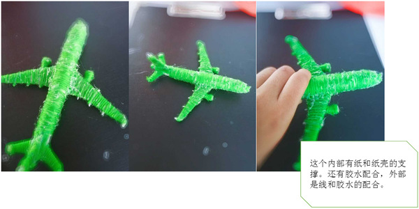 1702911班孙艳同学作品:利用细绳和胶水模拟FDM技术制作的飞机模型,造型准确,细节丰富。