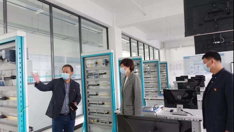 在机器机工程学院,宋烨来到实验室,院长、党总支书记刘显忠简要介绍了学院实验室建设和安全管理情况,宋烨对学院专业发展、实验室建设取得的成效表示肯定,强调要进一步解放思想,结合学校 “十四五”规划,进一步优化学院发展的顶层设计,进一步发挥党组织在学院建设发展中的战斗堡垒作用,抓好教育教学、师资队伍建设、师德师风建设等重点工作,团结带领师生在“十四五”期间实现更大突破。