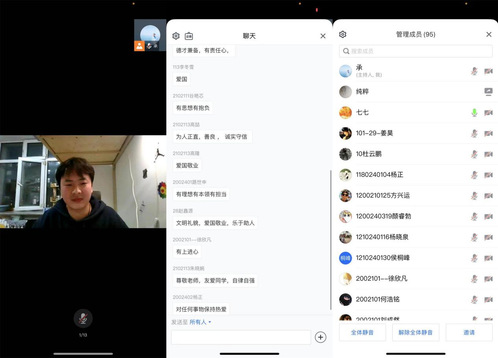 团课中,王郁黎书记结合疫情下学生干部在团支部、班级建设中的作用发挥以及如何进行自我剖析,学生干部履职尽责等方面内容进行重点培训。会议中,她针对德才兼备的新时代青年应具备哪些特质等方面内容,通过云端互动的方式与多名学员积极互动。期间,2020年度中国大学生自强之星获奖者1802401班崔玉麟同学分享了自己的成长历程。