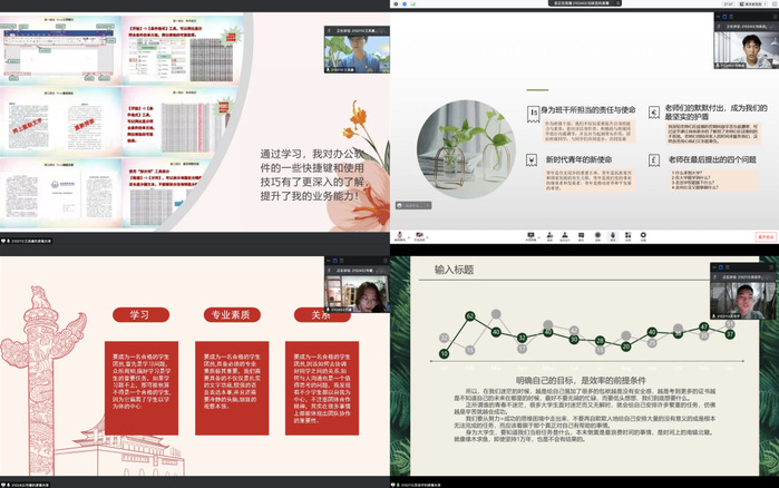 最后,杨志承老师作总结讲话,他对所有发言学员的努力付出表示肯定。他强调,今年是中国共产主义青年团成立100周年,我校也即将迎来自己三十岁生日。全体学员要拿出时不我待的拼搏精神,树立战胜疫情的决心,努力奋斗,不负韶华,用实际行动传递正能量。并鼓励所有学生干部要立大志,向榜样看齐,在学好专业知识的同时关注时政要闻,发扬老机电人攻坚克难的优良传统,为实现华德百年名校梦助力。