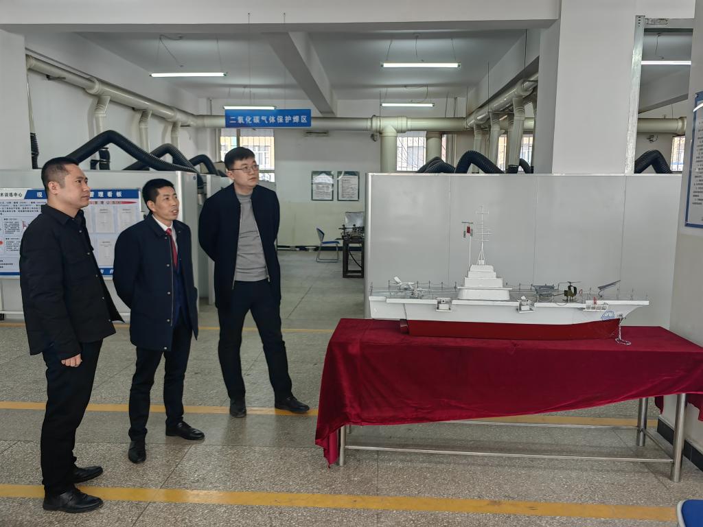 本次工作指导分为实地参观走访和专业建设座谈两个环节。在焊接技术与工程系主任郝亮、副主任廉杰的陪同下,尹立孟院士参观焊接技术与工程专业现代焊接技术训练中心。郝亮主任介绍了焊接技术与工程专业现状、教师团队及未来发展规划,对现代焊接技术训练中心在教育教学中发挥的重要作用做了详细讲解。