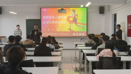 随后,郑义老师向同学们讲述了自己参加体育比赛时的经历感受,与同学们分享了参赛经验,鼓励学生们在体育比赛中要勇敢拼搏、团结协作、共同奋战。同时他提醒同学们在比赛中要恪守安全底线,加强自我保护,关注自身身体机能的变化。最后他希望同学们能够在比赛中展现出智能学院的卓越风采,走好强院之路,共铸智能学院的荣光。